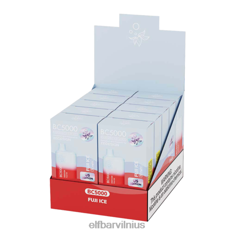 vienkartinio garintuvo skonis: „Fuji ice bc5000 vape“ skonis suteikia gaivų obuolių ir ledo skonį, kuris yra šiek tiek saldesnis nei rūgštaus obuolių ledo „ebdesigns vape“. Šis riboto leidimo „ebdesigns“ obuolių skonis suteikia malonų visos dienos garų kvapą, o kiekviename išpūtime yra daugybė skonio.