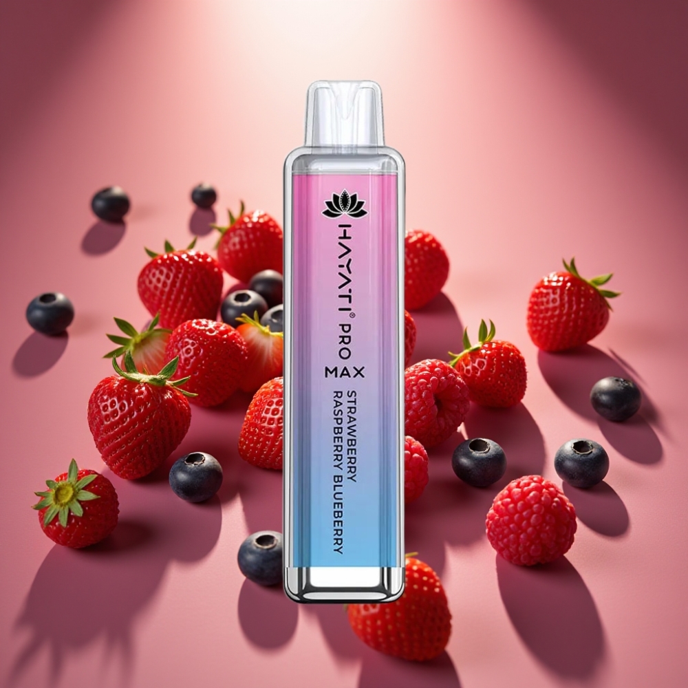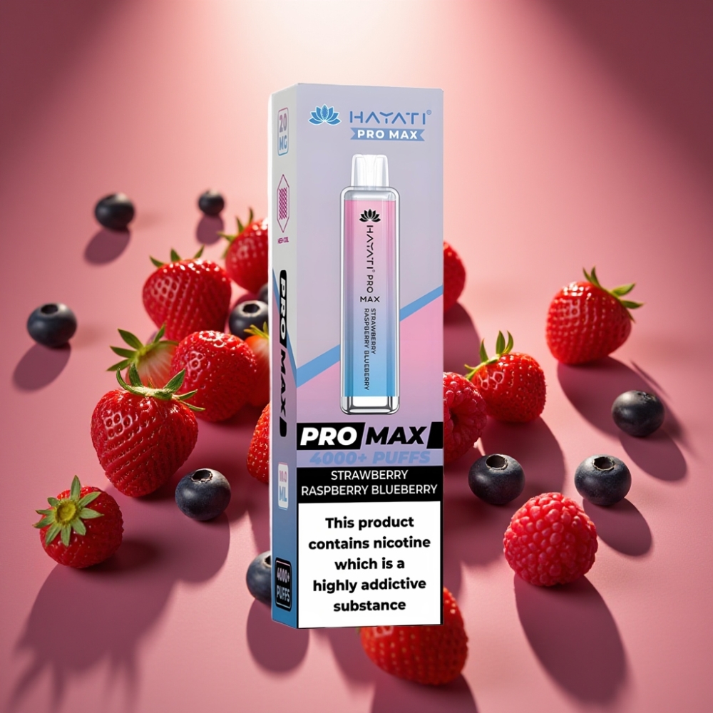 Hayati Pro Max 4000 Puffs Disposable Vape Braškė-Mėlynė-Avinžirnė, 2%/5% nikotino, 1400mAh, 28×28×120mm
