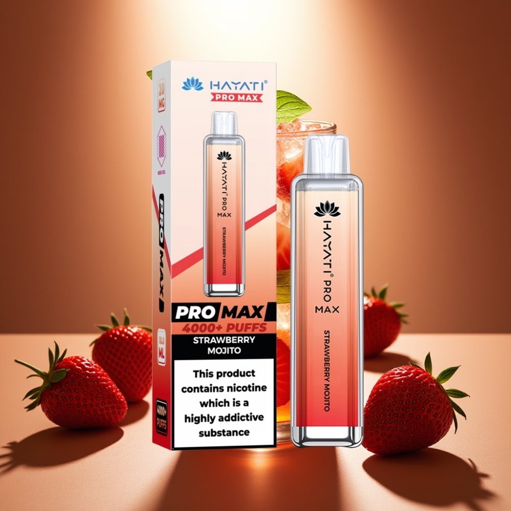 Hayati Pro Max 4000 Puffs Disposable Vape Braškinis Mojito, 2ml/10ml, 2%/5% nikotino, 1400mAh