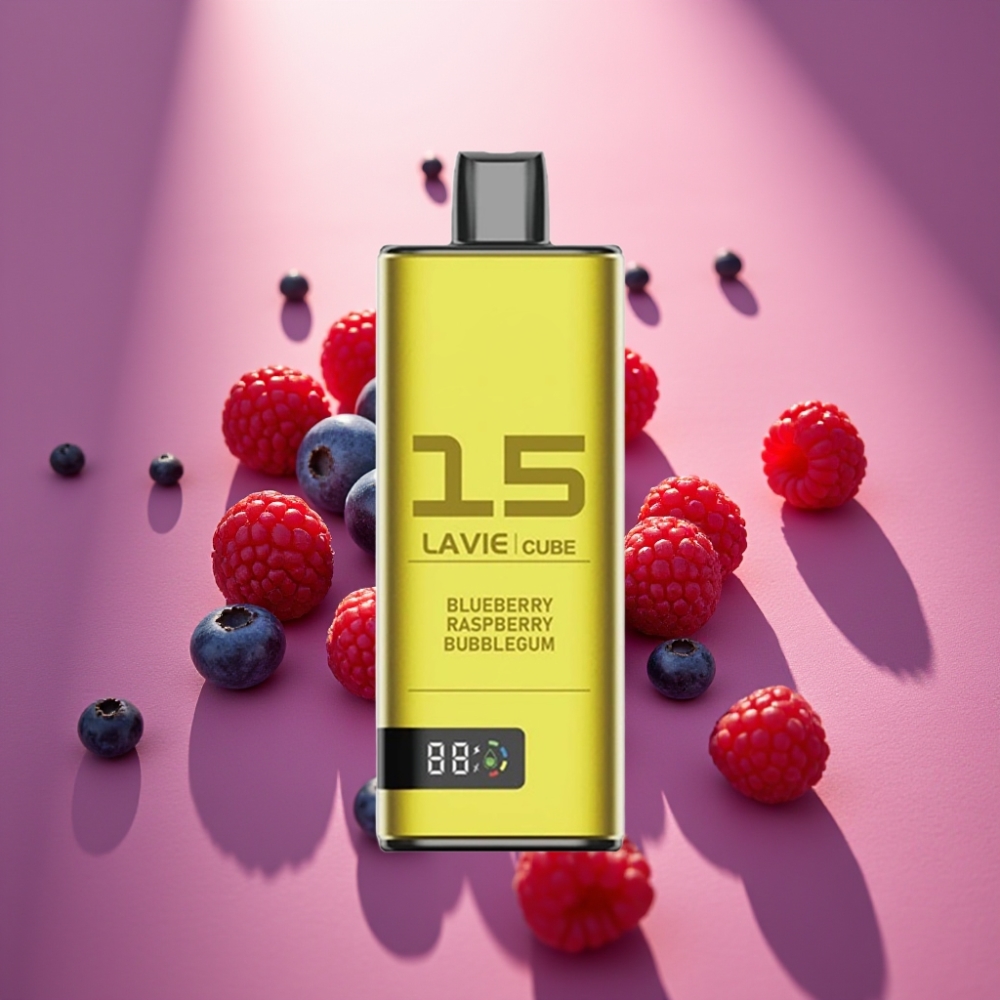 Lavie Cube 20000 Puffs Disposable Vape Mėlynųjų Gervuogių Aviečių Burbulų Gumas, 28ML, 600mAh