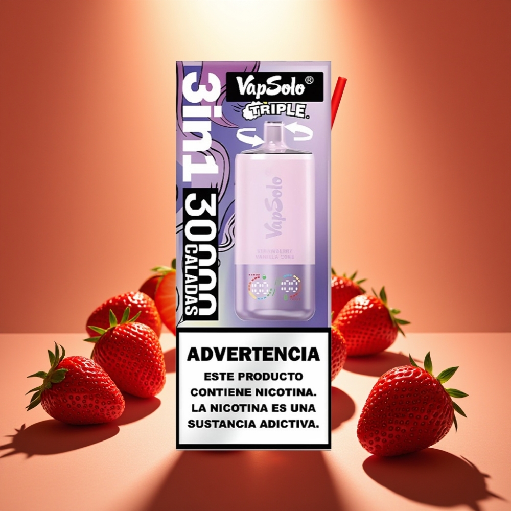 VapSolo Triple 30000 Puffs Braškės Vanilės Koka, 40ml, 20/50 mg/ml, Type-C