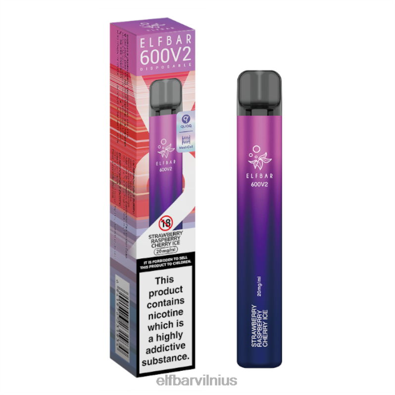 Elf Bar Cigarette – ELFBAR 600V2 vienkartiniai garai braškių aviečių vyšnių ledas 6VDNX18