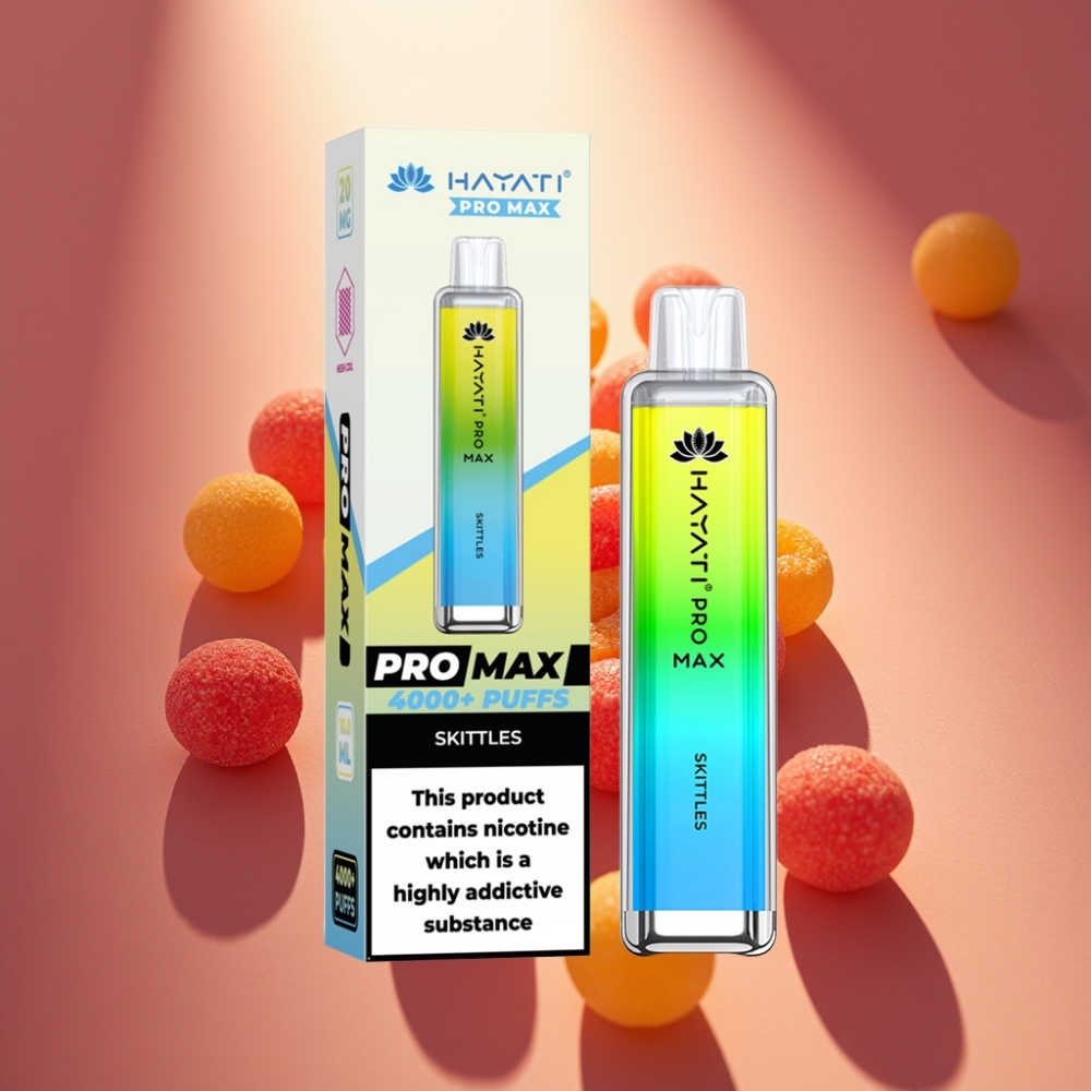 Hayati Pro Max 4000 Puffs Disposable Vape Skittlės, 2%/5% Nikotino, 1400mAh, 28×28×120mm