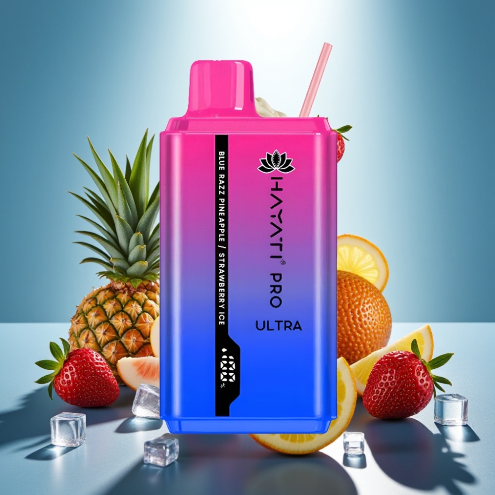 Hayati Pro Ultra 15000 Puffs Disposable Vape Mėlyna Avietė Ananasas Braškė Ledas, 15000+ Puffs, 2×12ml, 2%