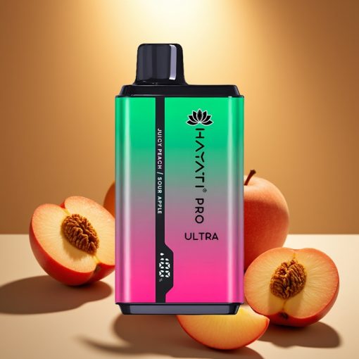 Hayati Pro Ultra 15000 Puffs Disposable Vape Rūgštus Obuolys Sultingas Persikas, 15000+ Puffs, 850mAh, 2×12ml