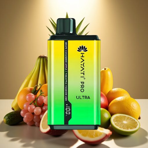 Hayati Pro Ultra 15000 Puffs Disposable Vape Vynuogė Agurkas Obuolys Ananasas Pasiflora 15000+ pūkų, 850mAh, 2×12ml