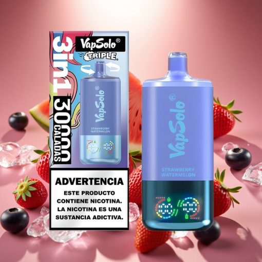 VapSolo Triple 30000 Puffs Braškynės Arbūzas & Mėlynųjų Uogų Ledas, 40ml, 20/50 mg/ml, Type-C