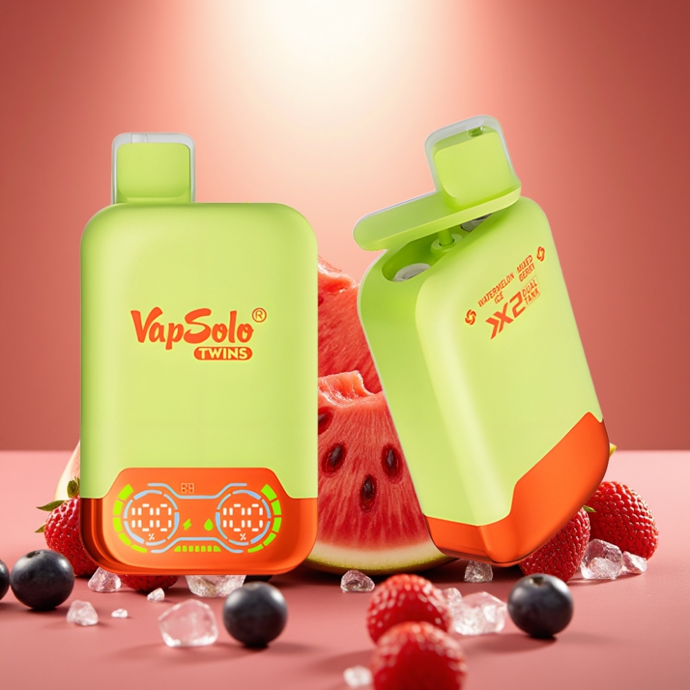 Vapsolo Twins 20000 Puffs Disposable Vape Arbūzas su Mėtu & Įvairių Uogų, 40ml, 20mg/ml/50mg/ml, Type-C
