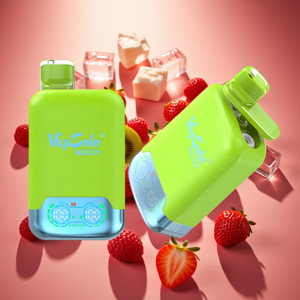 Vapsolo Twins 20000 Puffs Dūminė Pypkė Braškė Kiwi & Braškė Avietė Vyšnia Ledas, 40ml, 20mg/ml/50mg/ml, Type-C